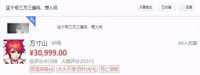 今天灵儿就有一位玩家发帖求助,他看中了一个精锐组方寸山角色,但是卖家摆出的价格高达30999元!由于担心急着入手会吃亏,所以这位玩家便决定求助资深的大佬玩家,希望能帮他出出主意。